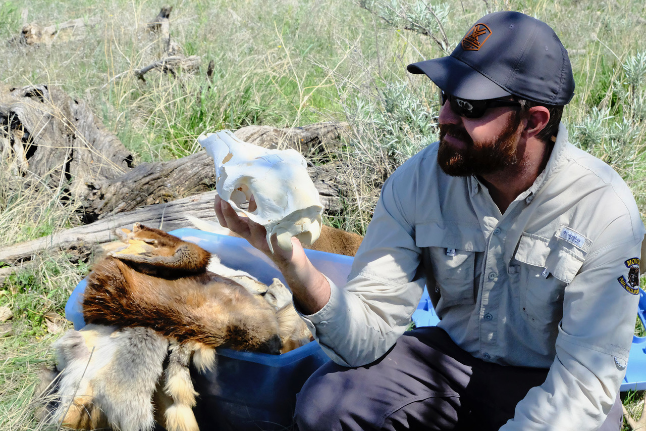 Seth Murnion, Soil Conservationist from the Miles City NRCS office, introduced the class to the noxious weed, leafy spurge. He had the students hunt for it in the field to test their observation skills. After identifying the plant and its noxious characteristics, the students created a weed web, effectively demonstrating how easily such plants can spread from one location to establish in another if proper precautions aren’t taken. The students were able to demonstrate their wildlife identification skills as Ryan DeVore, Fish, Wildlife, and Parks Game Biologist, showed them various skulls, hides, and antlers to identify.